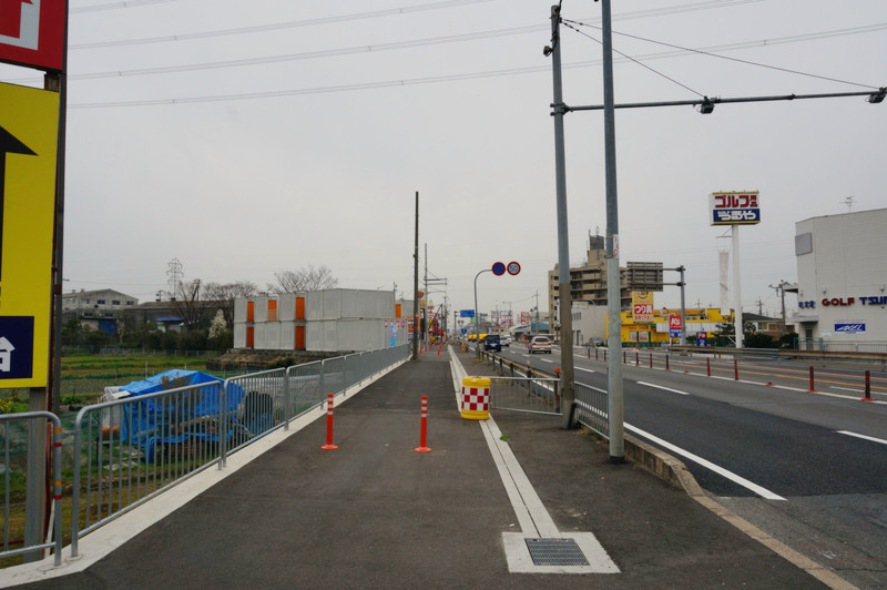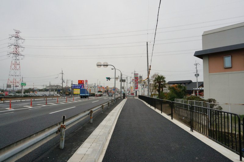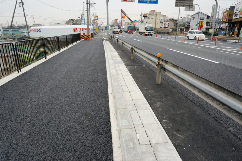 以前は写真右の白い縁石とガードレールの間ぐらいの幅しかなかったのでかなり広くなりました。