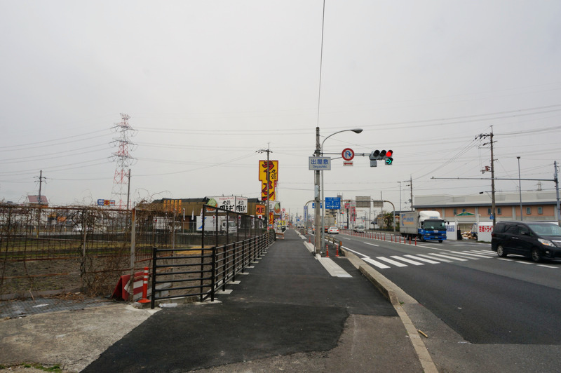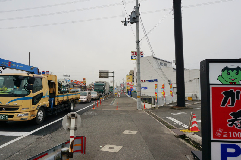 では国道1号線を横断して西側(かっぱ寿司側)に渡ります。