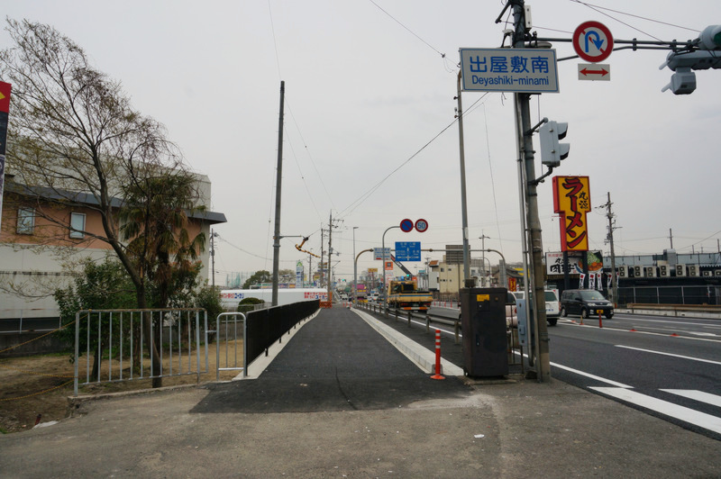 出屋敷南から大阪方面の歩道は2012年3月に開通してます。もう1年たったんですね。