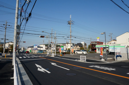 枚方三中前のファミマがある交差点に右折レーンと歩道ができてます。