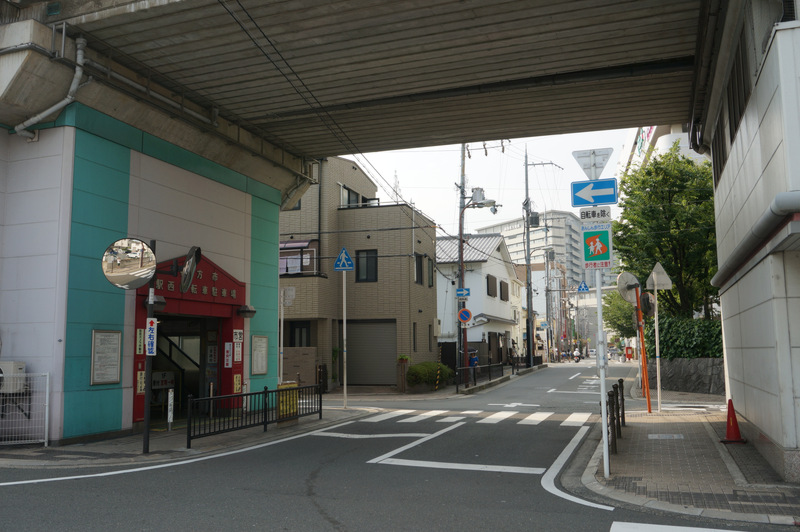 あっちに行くとファミリーマートなどがあって枚方市駅前のTSUTAYAゲーム館とかauショップとかがあるスクランブル交差点に出ます。一方通行なので車ではあっちに進めないですが。
