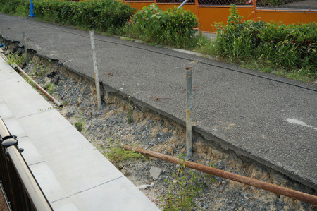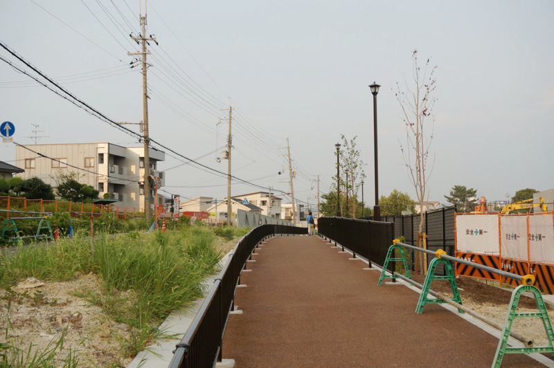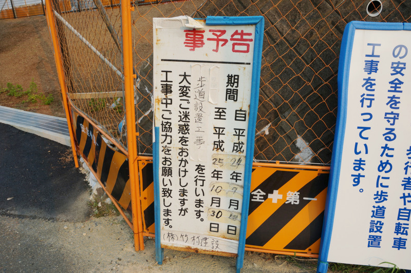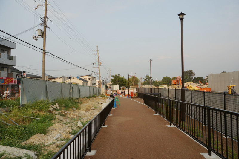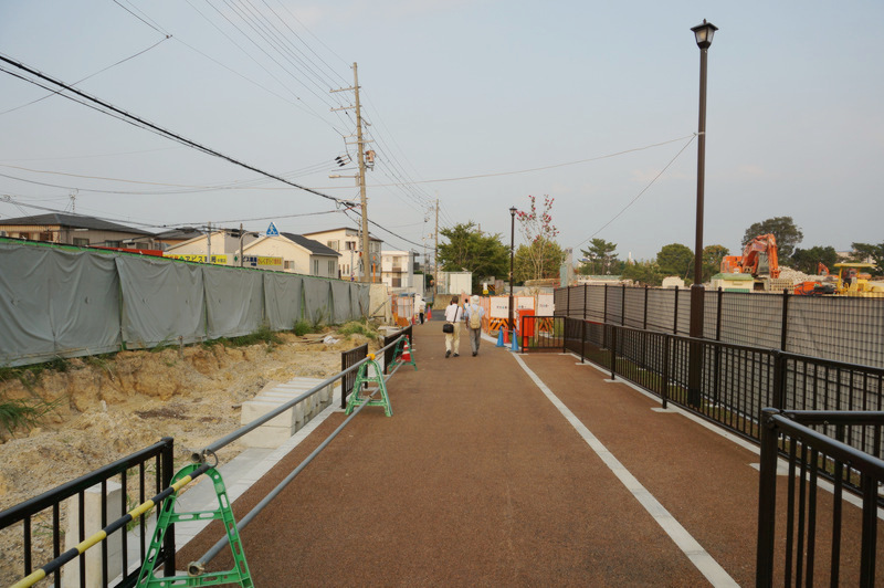 以前の歩道は写真中央よりちょっと右側ぐらいの位置で、左のが新しい歩道です。つまり工事が終わると道路が広くなるみたいです。