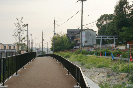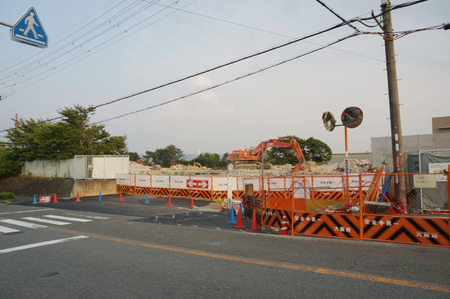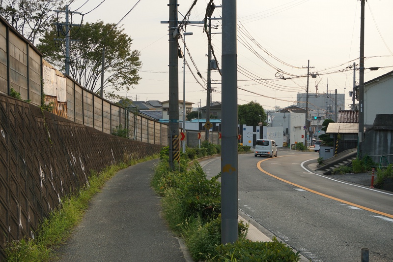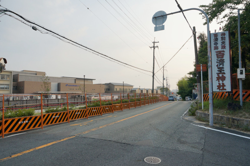 新病院ができて旧病棟を解体してる大阪府立精神医療センター(旧・中宮病院)と、百済寺跡・百済王神社の間の道です。