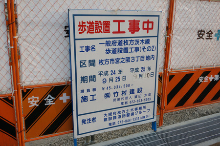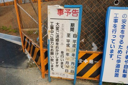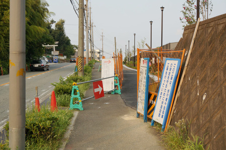 百済王神社・百済寺跡前の道路が広くなるみたいです。歩道の位置が変わってます。