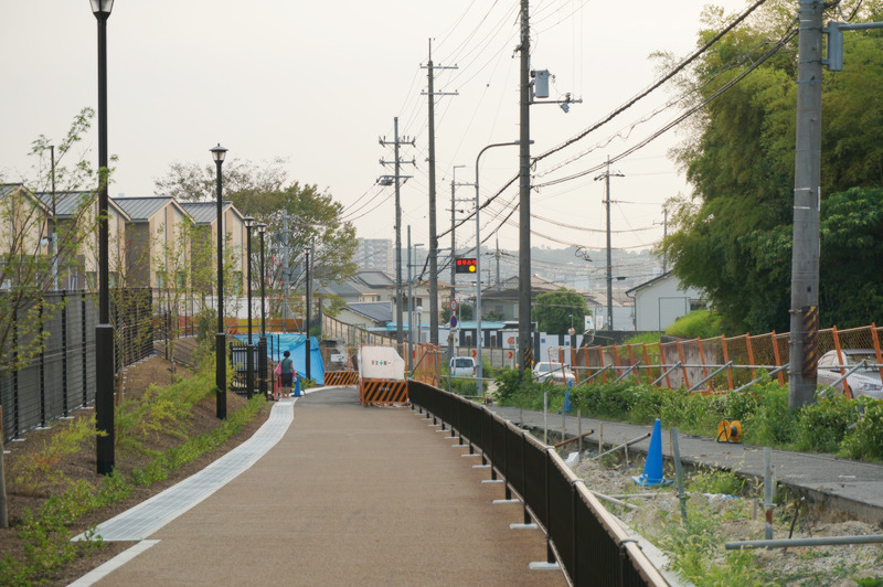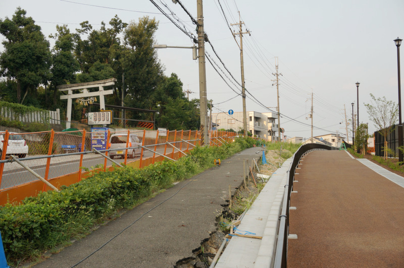 宮之阪交差点からここに至るまでの歩道も去年綺麗になりましたし、中宮小前も工事してますし、この道路が重点的に整備されてるんですね。