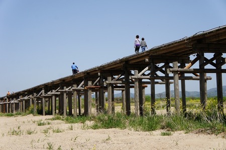 流出の歴史は「上津屋橋 Wikipedia」に載ってます。流れ橋というのは通称で、正式には上津屋橋です。