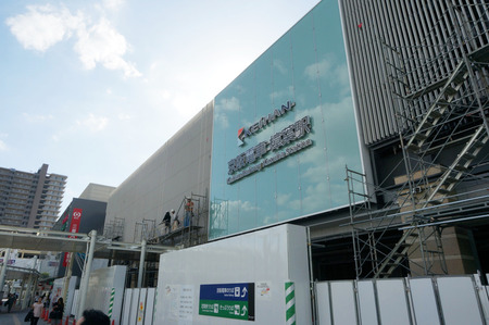 リニューアル中の樟葉駅を覆っていた工事の幕が取り払われ、新しい外観があらわになりました。