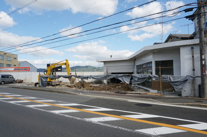 高田のガソリンスタンド「春日石油」だったところを解体してます。