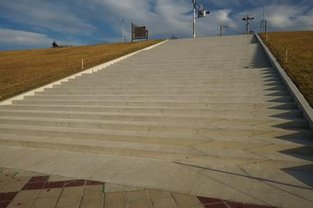 新しい階段。枚方大橋に近いほうの階段は工事中でまだ下りられません。