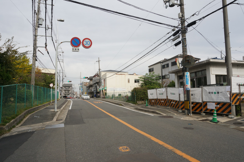 こっちに行くとすぐ右手にスーパーワカバがあって、ずっと行くと藤阪駅や津田駅のほうへ。