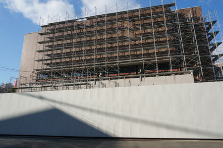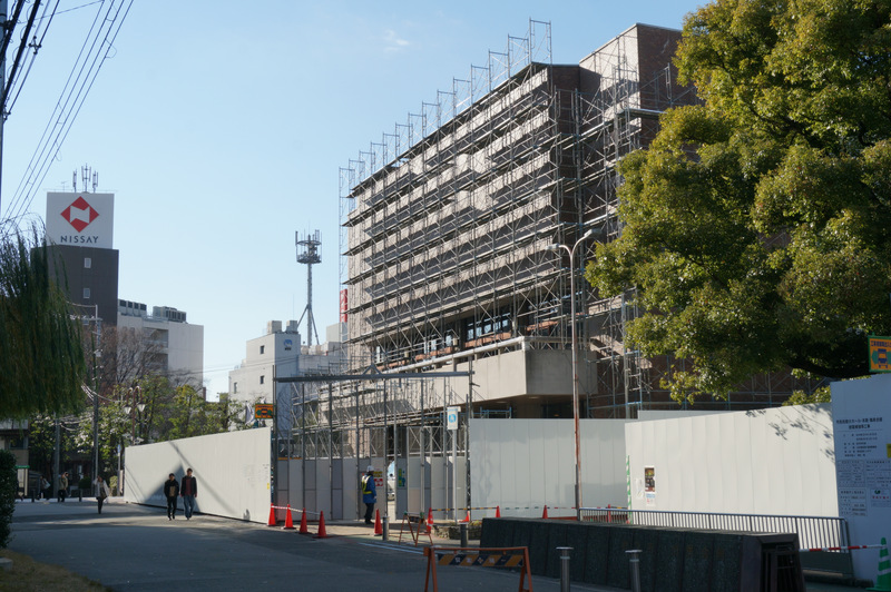枚方市役所でも改修工事が行われるみたいです。某ココナッツに同調して全面黄色にするのかもしれません(違)