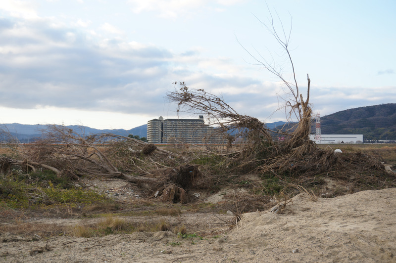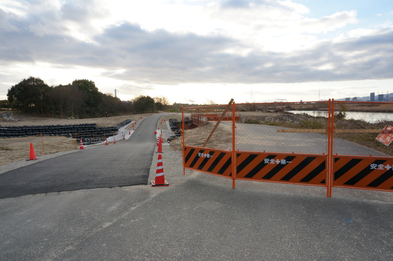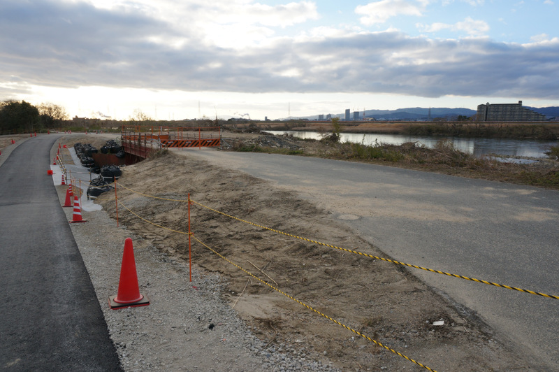 淀川サイクリングロードの、淀川と穂谷川が合流するあたりにあった橋が去年の台風でなくなってましたが、隣に新しい道ができてます。