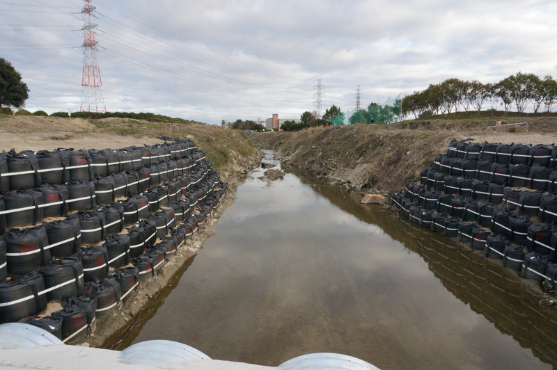 新しい道路は橋じゃなくて道路の下にパイプがあるような構造になってます。
