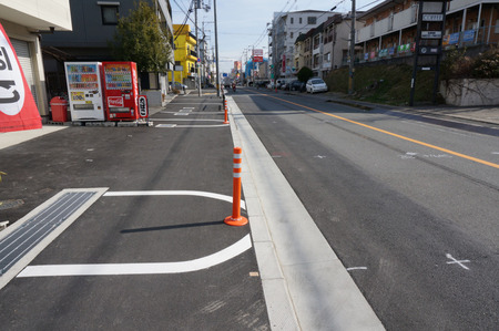車道のオレンジの中央線のちょっと左にうっすら線が見えますが、この分だけ車線が移動しました。