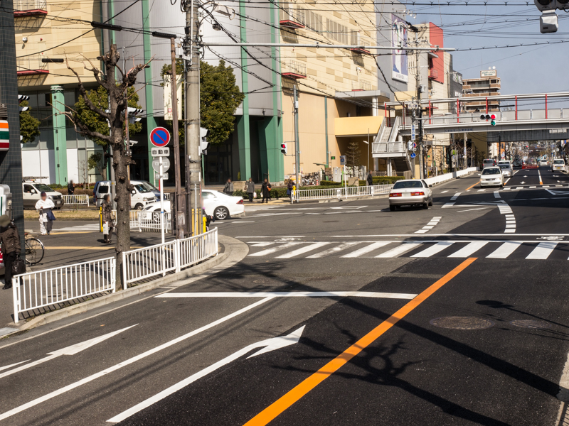 原付で今回の写真を撮りにいきましたが、車線数の変更による二段階右折の存在を忘れそうになり、危なかったです。みなさんも朝日側からくずは駅方面に行く際に、原付で右折される際にはお気をつけください。