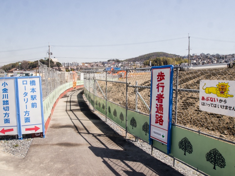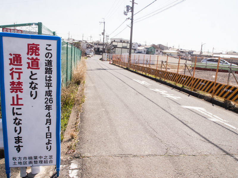 ・楠葉中之芝地区の工事の状況。新しく歩道ができてる 2013年8月