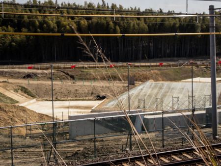 別角度(旧1号線)から見たところ。計画図によればこの辺りは史跡公園になるようです。