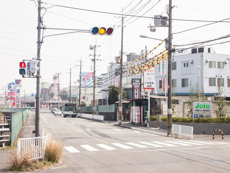こちらがわの奥には万代が見えていて、さらに行くと国道1号線の家具団地前交差点に出ます。以前は写真右あたりのところにあった出入口がなくなったので、道路を走ってるときの印象がけっこう変化しました。