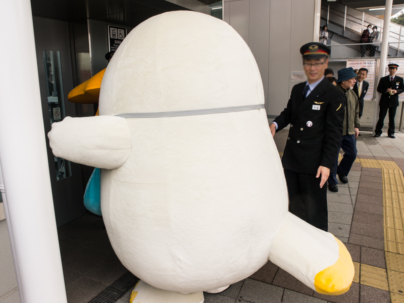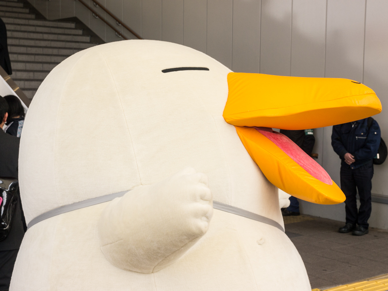ICOCAのマスコットキャラクターのカモノハシのイコちゃん!!でもなんか…もっとこう…身体が青くなかったっけ?と思ったら、どうやら「SMART ICOCA」のキャラクター「スマートイコちゃん」だったようです。