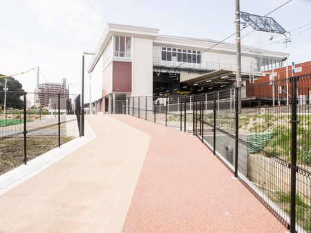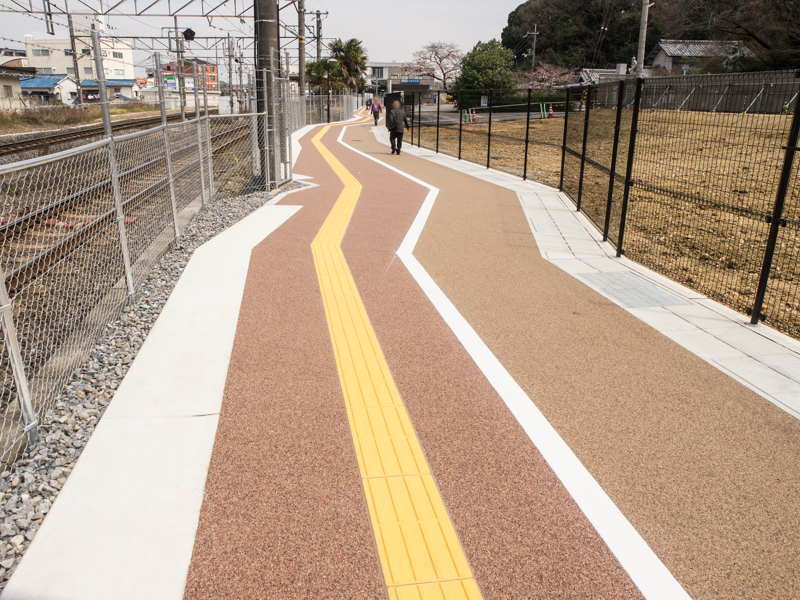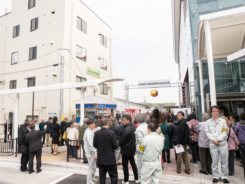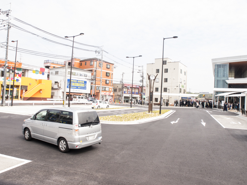 長尾駅前広場のロータリーと東側出入口が完成して、人が通れるようになっています。