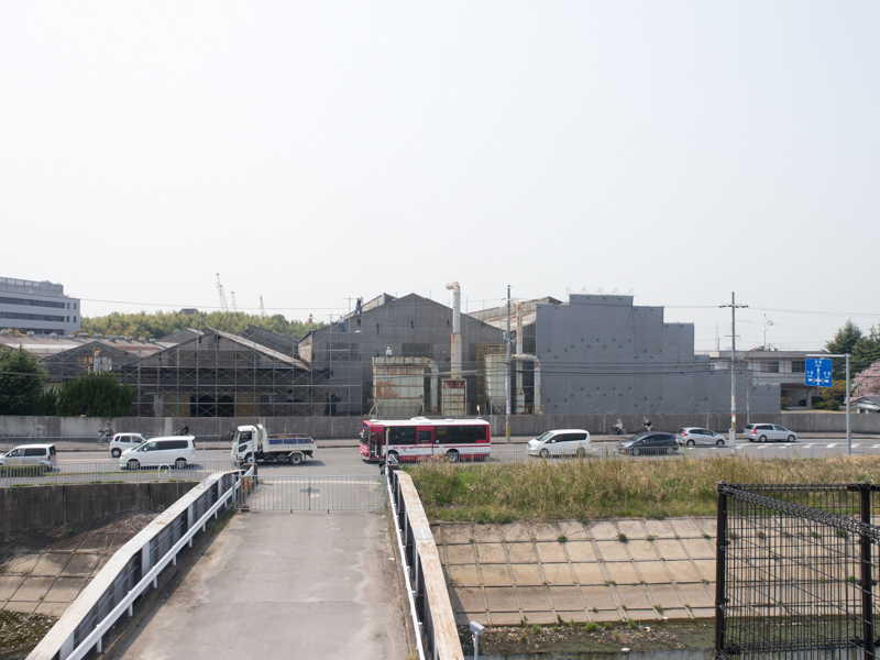 すぐそこが国道1号の招提交差点。写真でも車が並んでますがここはよく渋滞してるので、信号待ちをしながら何となく工場を眺めたことがある人も多いんじゃないでしょうか。