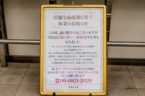 公式サイトのお知らせによると5月11日にアミューズは一時休業したようです。