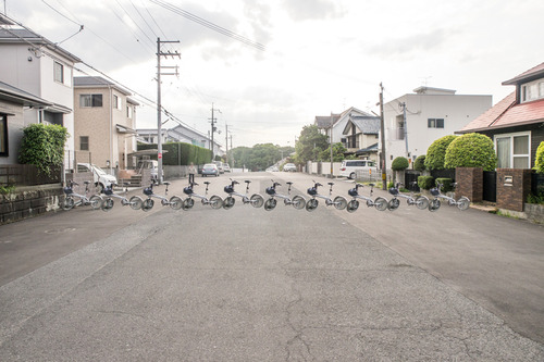 どれくらい広いのか計算してみると、マイチャリが155cmなので、約10台分なので15mくらいの幅があります。(写真は合成です)