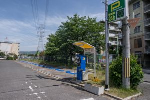 ここだけ何故か歩道が出っ張ってます。電柱のスペース対策でしょうか。