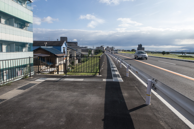 旧1号線・三矢~桜町の堤防工事が終わり、歩道が完成しています。