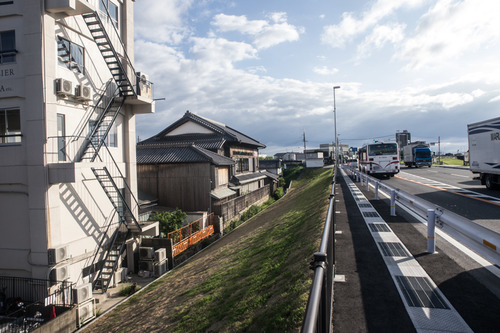旧1号線から住宅街側に下りる階段。以前はL字型でしたが新しくなって旧1号線に対して垂直になりました。