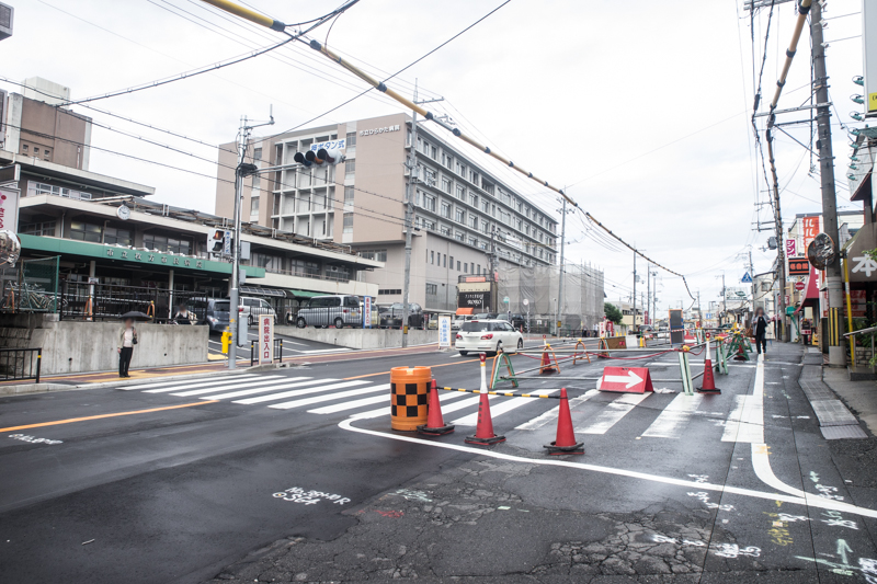 枚方市民病院(新病院が完成したら「市立ひらかた病院」)前の道路の工事部分が移動しています。