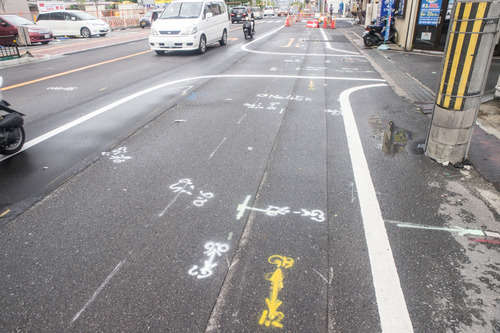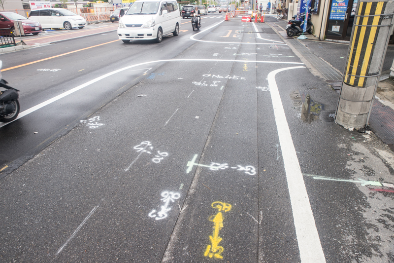 これは車道が増えるのか歩道がゆったりスペースができるのかわからなくなってきました。
