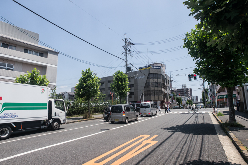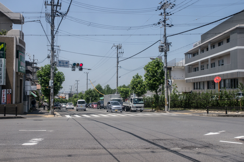 反対方向に行くとさくら公園やラ・ムーの前を通って国道1号の餃子の王将八幡店などのある交差点に至ります。