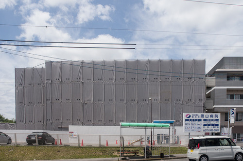 男山病院の旧館の解体工事がはじまっています。
