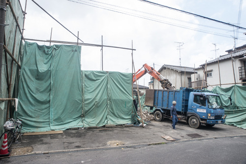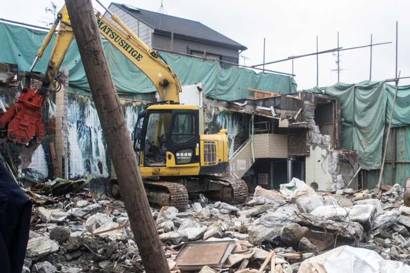 ショベルカーの右側はおそらく男子風呂のサウナあたりだと思われます。