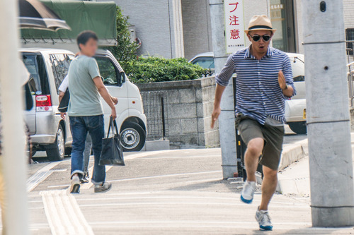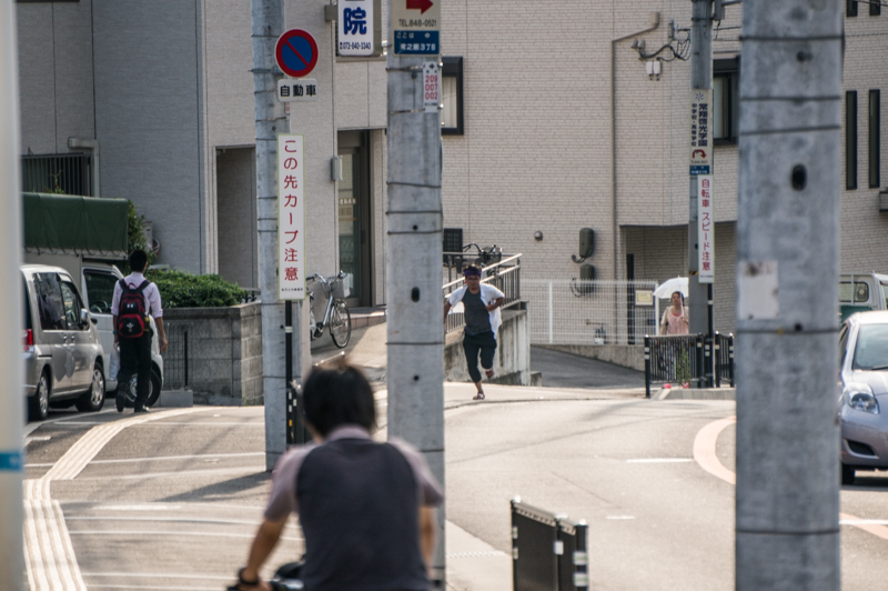 顔が完全にガチの顔です。そりゃあサングラスの男が全力で坂道を駆け上がっていたら通行人の方も振り返りたくなる気持ちにもなってしまいます。