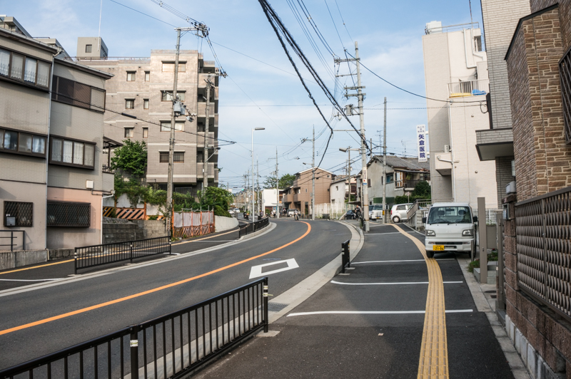 先の写っている信号を越えたあたりの位置まで。この辺りがおそらく一番坂道としてキツイのではないだろうかという予測からチョイス。