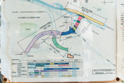 こちらはおそらく完成した時の道路の形。下の表を見てみると、完成まで最低でも平成28年末まではかかることがわかります。
