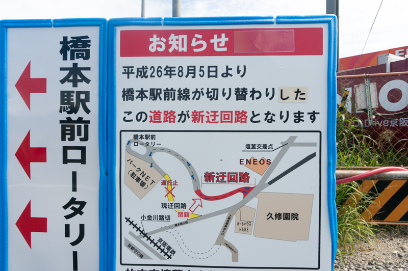 説明的な記事タイトルになってしまいましたが、楠葉中之芝、橋本駅南あたりの道路が封鎖されて迂回路が2つできています。