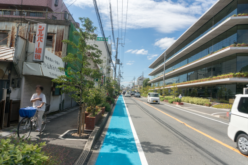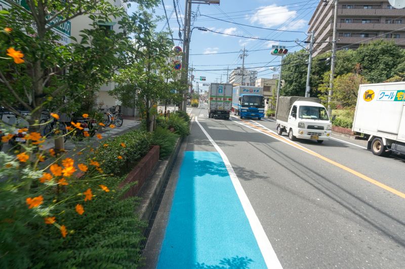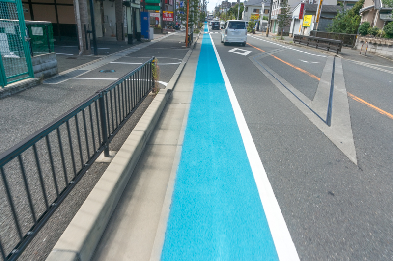 完成形がどんな感じになるのかまだわかりませんが、実際自転車で走ってみると、路上駐車している車があると迂回しないといけないのがちょっと大変だと思いました。水色ゾーンはバイクも走れませんが、知らずに普通に走ってしまう人もいそうなのでしっかりした周知が必要そうです。