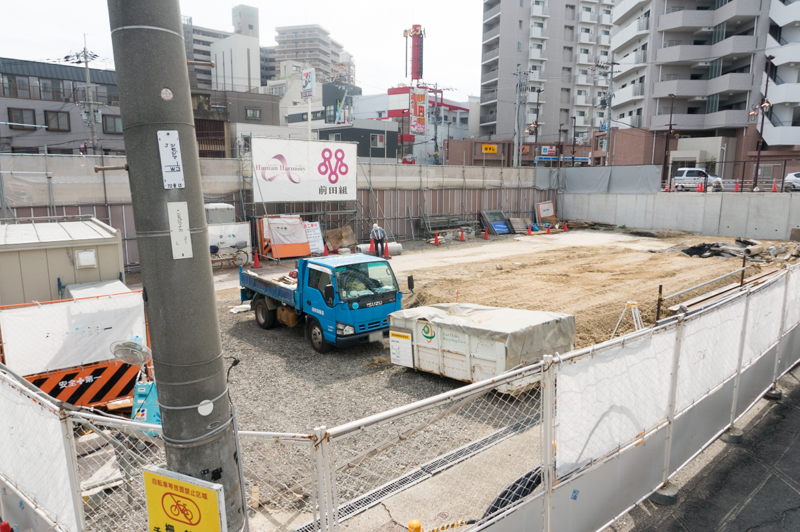 京阪ザ・ストア跡地の一部にはすでにセブンイレブンがオープンしたので、今回事務所ビルができるのは残りの線路よりの部分(3分の2ぐらいでしょうか)ということになります。