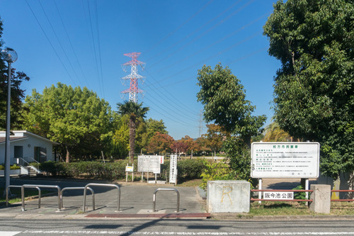 こっちにいくと前述した阪今池公園の前を通って、穂谷川をわたると突き当たりに片埜神社が。川の手前を左に曲がると牧野駅の方へ。
