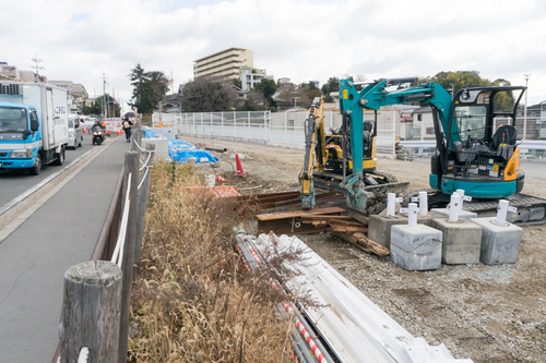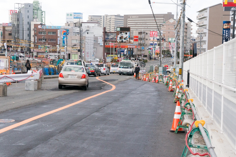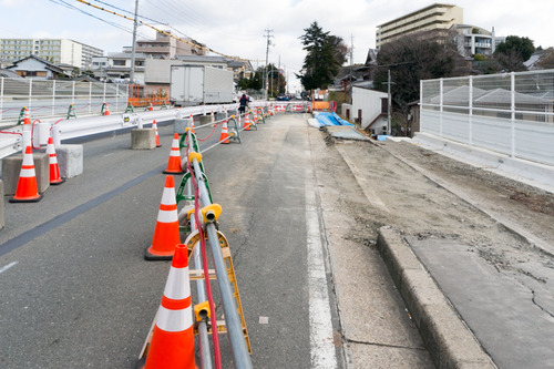 いよいよ道路が完成まで3ヶ月ほどになったというところですが、最終的に下りの車線が信号付近は2車線になるとかでしょうか。歩道の道幅が狭いイメージがありますが、そのあたりがどうなるのとかも気になるところですね。