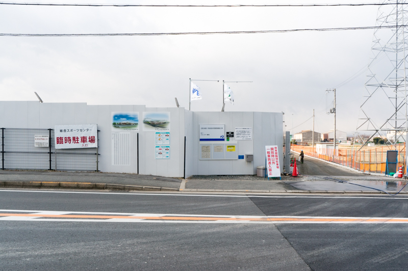 総合体育館の臨時駐車場のところに建設を予定しているの第一学校給食共同調理場(仮称)の工事がはじまっています。