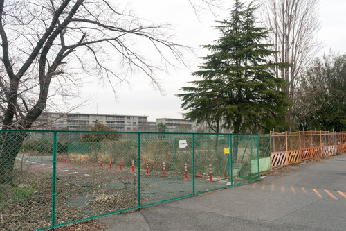 南西側。かなり大きい敷地で、発表によると面積は50,285.83 ㎡とのこと。