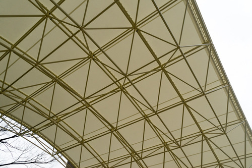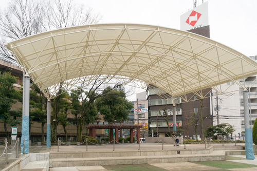 枚方市役所前にある岡東中央公園に作っていたステージの屋根が完成しています。