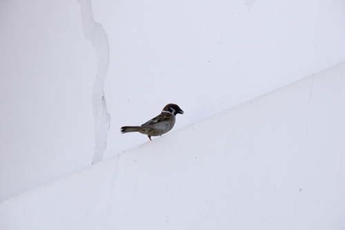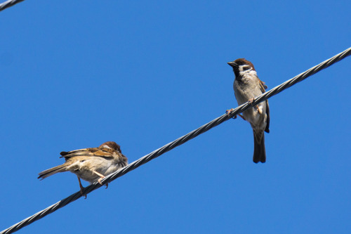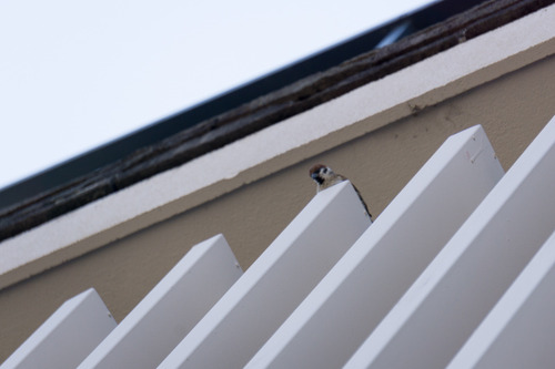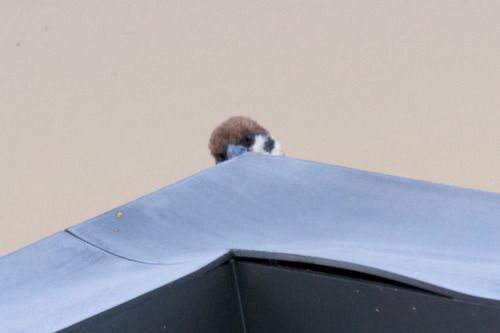 それでも撮影しようとねばっていたら、親スズメと思われるスズメが近くによってきたので撮影しました↓