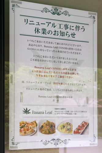 ■ CONOBA香里ヶ丘にある「バナナリーフ」がリニューアルのために休業してる↓