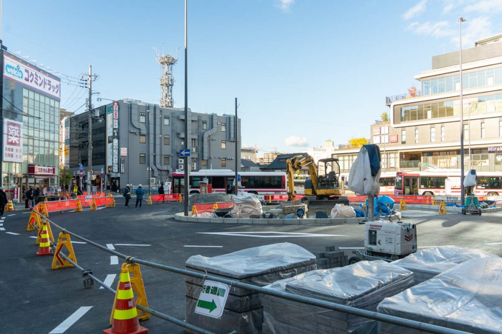 北口の駅前広場で工事が進むことに伴う変更との案内。利用している人はちょい注意なやつです。