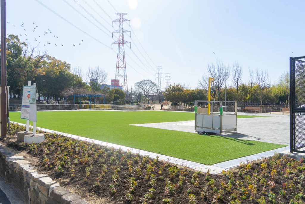 楠葉中央公園に人工芝エリアができています。